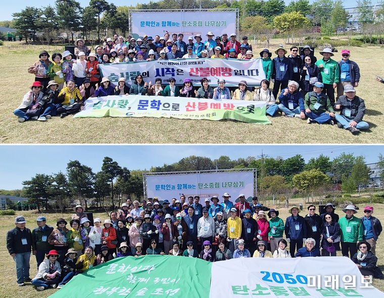 (파주=미래일보) 장건섭 기자 = 펜을 내려놓은 문학인들이 삽을 들었다. 종이 위에 머물던 문장이 흙 속으로 스며들고, 한 줄의 시는 한 그루의 나무로 자리를 잡았다. 탄소중립이라는 시대적 과제를 앞에 둔 지금, 문학은 더 이상 기록에 머무르지 않고 행동으로 확장되고 있었다.