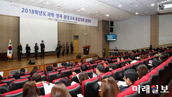 광주광역시교육청(교육감 장휘국)은 19일 광주교육과학연구원 대강당에서 이 같은 내용이 담긴 '2018학년도 과학·영재·환경 교육 종합계획 설명회‘를 개최했다. 설명회엔 관내 초·중등학교 과학·영재·환경 담당 교사와 전문직 등 300여 명이 참여했다.