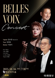 (서울=미래일보) 장건섭 기자 = 깊어가는 가을 밤, 관객들의 마음을 적실 클래식 성악 무대가 열린다. 오는 10월 16일(목) 저녁 7시 30분, 영산아트홀에서 '벨 부와(Belles Voix) 콘서트'가 막을 올린다. 이번 무대는 소프라노 김보영(예술총감독), 테너 정세욱, 바리톤 이광석이 꾸미는 성악의 향연으로, 유럽과 한국의 명가곡, 오페라 아리아, 영화음악까지 폭넓게 아우르며 클래식 성악의 매력을 집약해 선보인다. 다채로운 레퍼토리, 가을의 감성을 물들이다 첫 무대는 E. Gold의 <Exodus 탈출>로 장엄하게 문을 열고, 이어 J. Kosma의 <Les Feuilles Mortes 고엽>, Y. Frenkel의 <Журавли(백학)>, 임긍수의 <사랑하는 마음>, L. Ronald의 <Prelude 전주곡> 등이 선보인다. 또한 J. A. Butterfield의 <When you and I were young, Maggie>, L. Bernstein의 뮤지컬 넘버 <Tonight 오늘밤>, J. Revaux와 C. François의 <My Way> 등이 울려