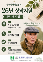 (서울=미래일보) 장건섭 기자 = 사단법인 한국현대시인협회(이사장 이승복)가 2026년 창작지원사업의 두 번째 프로그램으로 원로 시인 박진환 초청 특강을 연다. 이번 강연은 오는 4월 27일 오전 11시부터 서울 종로구 한글회관 3층 308호 협회 사무실에서 진행된다. '체험에서 형상화까지'를 주제로 열리는 이번 특강은 시 창작의 출발점인 체험을 어떻게 시적 형상으로 전환할 것인가에 대한 실질적인 방법론을 제시하는 자리다. 특히 박진환 시인이 창안한 '풍시조(諷詩調)'를 중심으로, 시대와 사회를 관통하는 풍자의 미학과 장르 확장의 가능성을 집중적으로 다룰 예정이다. "풍시는 길 위에서 태어난다"…시대와 맞닿은 장르 이번 프로그램과 연계해 이승복 시인은 '길 위의 문학-박진환 시인과 풍시조'라는 글을 통해 풍시조의 문학사적 의미를 짚었다. 그는 "신생 장르는 시대의 요청 속에서 탄생한다"며 "특히 풍자문학은 사회 현실과의 긴밀한 접속 없이는 존재할 수 없다"고 강조했다. 이승복 시인은 풍자의 시선이 "따뜻한 실내가 아니라 비바람 부는 길 위에서 형성된다"고 규정하며, 풍시조가 당대 사회의 모순과 욕망을 정면으로 응시하는 장르임을 분명히 했다. 이는 물신주의,