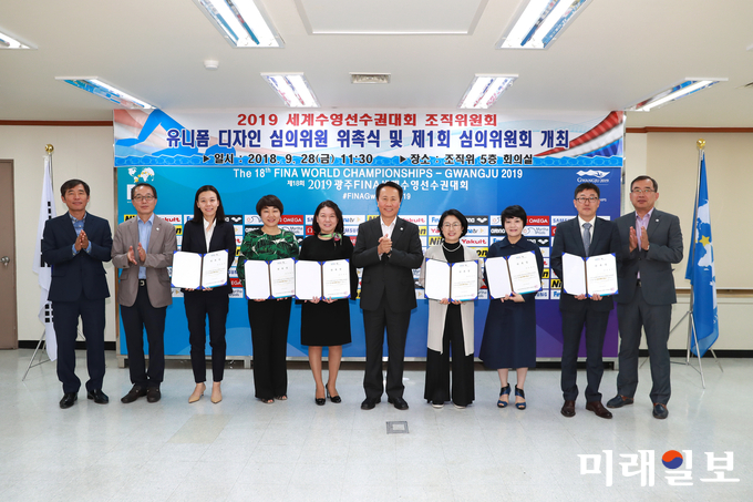 (광주=미래일보) 이중래 기자 = 2019광주세계수영선수권대회 조직위원회(위원장 이용섭 광주광역시장, 이하 “조직위”)는 지난 9월 28일 유니폼 디자인심의위원회를 발족하고 위촉장 전달과 함께 디자인 심의위원회를 개최하였다.조직위에 따르면 2019광주세계수영선수권대회의 슬로건인 “평화의 물결 속으로”와 대회 기본이념을 표현할 수 있는 유니폼 제작을 위해 섬유․의류 등 관련분야 외부 전문가 6명을 심의위원으로 위촉하였다.