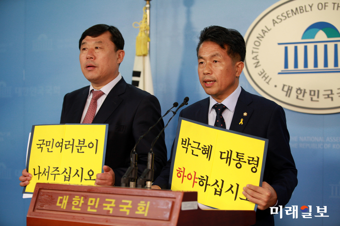 (서울=미래일보) 장건섭 기자 = 정치권 안팎에서 박근혜 대통령의 하야를 요구하는 가운데 현역 의원들마저 이에 가세하고 있어 ‘최순실 게이트’ 파장이 확산될 전망이다.윤종오·김종훈 무소속 의원은 26일 기자회견을 통해 박 대통령의 하야를 요구했다.