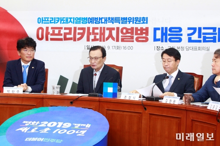 (서울=미래일보) 장건섭 기자 = 이해찬 더불어민주당 대표가 17일 경기도 파주에서 처음 발병한 아프리카 돼지열병(ASF)에 대해 "신속한 대응체계를 마련해 전국 확산을 반드시 막아야 한다"고 말했다.이 대표는 이날 오후 국회에서 아프리카돼지열병 대응 긴급대책회의를 열고 "정부가 골든타임을 놓치지 않도록 가용한 모든 수단을 동원해 총력대응해야 한다"며 이렇게 말했다.