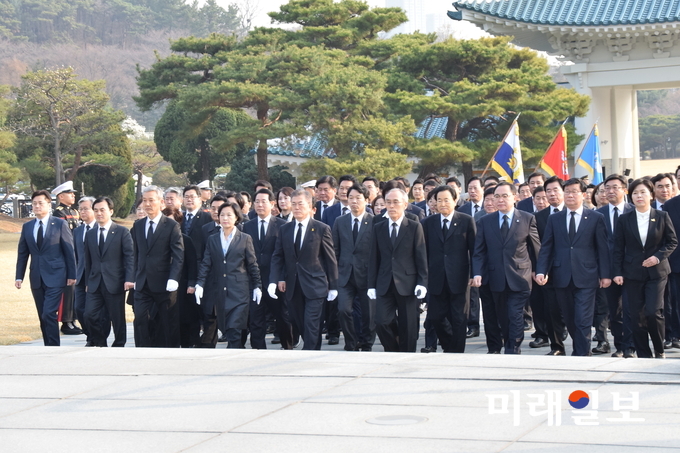 (서울=미래일보) 장건섭 기자 = 문재인 더불어민주당 대선 후보와 추미애 대표를 비롯한 당 지도부가 4일 오전 서울 동작구 국립서울현충원을 참배하고 있다.