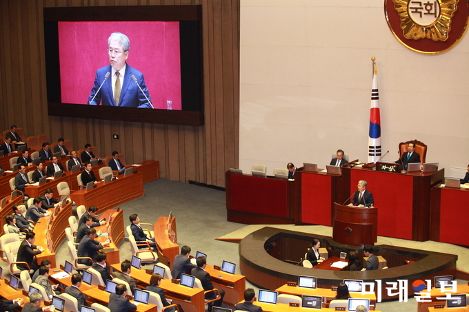 존경하고 사랑하는 국민 여러분! 국회의장과 선배동료의원 여러분! 국무총리와 국무위원 여러분! 지난겨울, 전국에서 타오른 1600만 촛불민심은 박근혜 정권을 탄핵하고 정권교체를 성공시켰습니다. 국정농단으로 만신창이가 된 나라를 바로 세우고 국가대개혁을 완수하라는 국민의 준엄한 명령이었습니다. 국가의 기본질서를 회복하고, 상식이 통하는 세상을 만들어 미래를 향해 전진하라는 국민의 열망이었습니다.