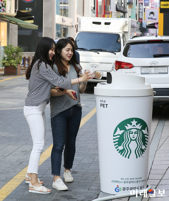 여기에 더해 지난 8월에는 스타벅스, 궁전제과와 함께 충장로 일원에 120㎝ 크기의 테이크아웃 컵 모양의 대형 분리수거함 5개를 제작·설치해 시민들의 호응을 얻고 있다. 대형 분리수거함 설치 후 거리를 지나던 시민들이 테이크아웃 컵을 버리며 인증샷을 찍는 등 화제를 모으고 있다.