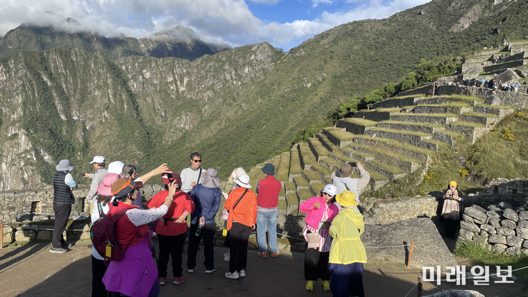 드디어 버스에서 내려 마추픽추 매표소 입구로 들어갔다. 우리 외에도 많은 외국인 관광객이 있었다. 호텔을 출발할 때는 비가 약간 내리는 날씨였으나 마추픽추에 오르는 시간은 날씨가 쾌청하여 맑은 공기를 마시는 기분은 너무나 상쾌하고 기뻤다.