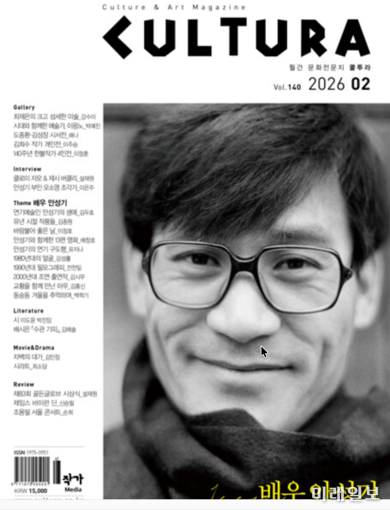 (서울=미래일보) 장건섭 기자 = 월간 문화예술지 <쿨투라> 2월호가 지난 1월 5일 별세한 국민배우 고(故) 안성기를 특집으로 조명하며, 그의 연기 인생을 한국영화사의 유산으로 기록했다. 이번 호는 한 배우의 필모그래피를 넘어, 한국 사회와 영화가 함께 건너온 시간의 궤적을 되짚는 데 초점을 맞췄다.