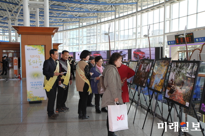 전북의 봄 여행지로 손꼽히는 고창 청보리밭축제, 남원 바래봉철쭉제, 전주 국제영화제 등을 소개하는 홍보사진도 함께 전시하고 있다.