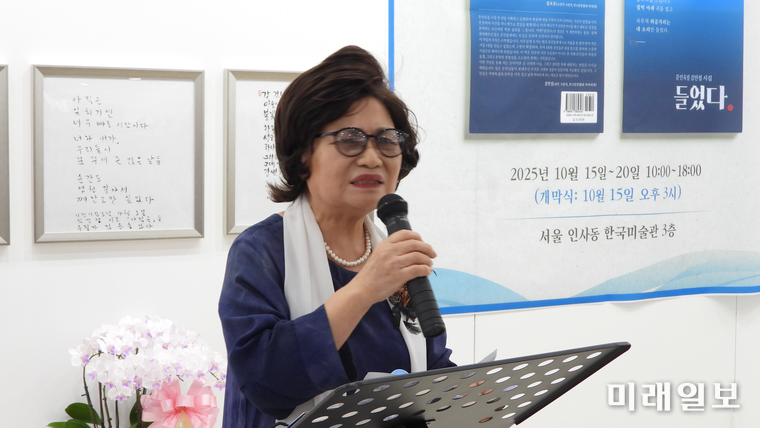 김 이사장은 이어 "150여 명의 문인들이 한 시인의 시를 함께 쓴 이 전시는, 한국문학의 연대와 존경의 증거이자, 우리 문단의 새로운 역사로 기록될 것"이라고 덧붙였다.