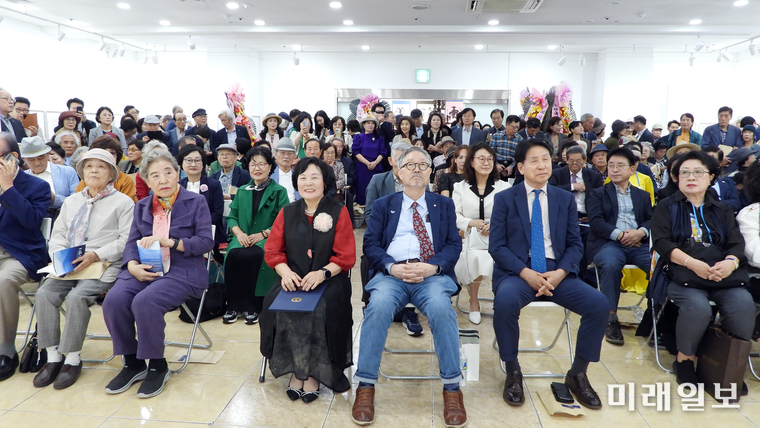 (서울=미래일보) 장건섭 기자 = 지난 10월 15일 오후, 서울 종로구 인사동 한국미술관 3층 전시실은 문학의 향기로 가득 찼다.김민정 시인의 문인육필 시집 <들었다> 출판기념회 및 육필 작품전시회가 열린 이곳에는 문단의 중진과 원로 문인, 후배 시인, 일반 독자 등 500여 명이 운집해, 시인의 문학세계를 축하했다.