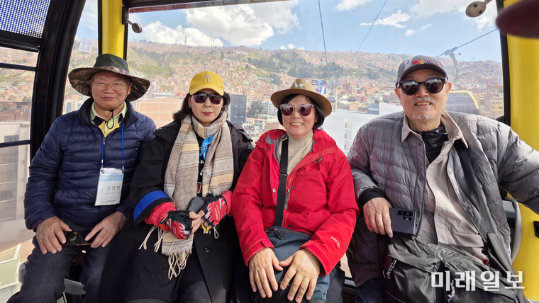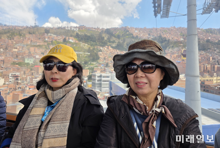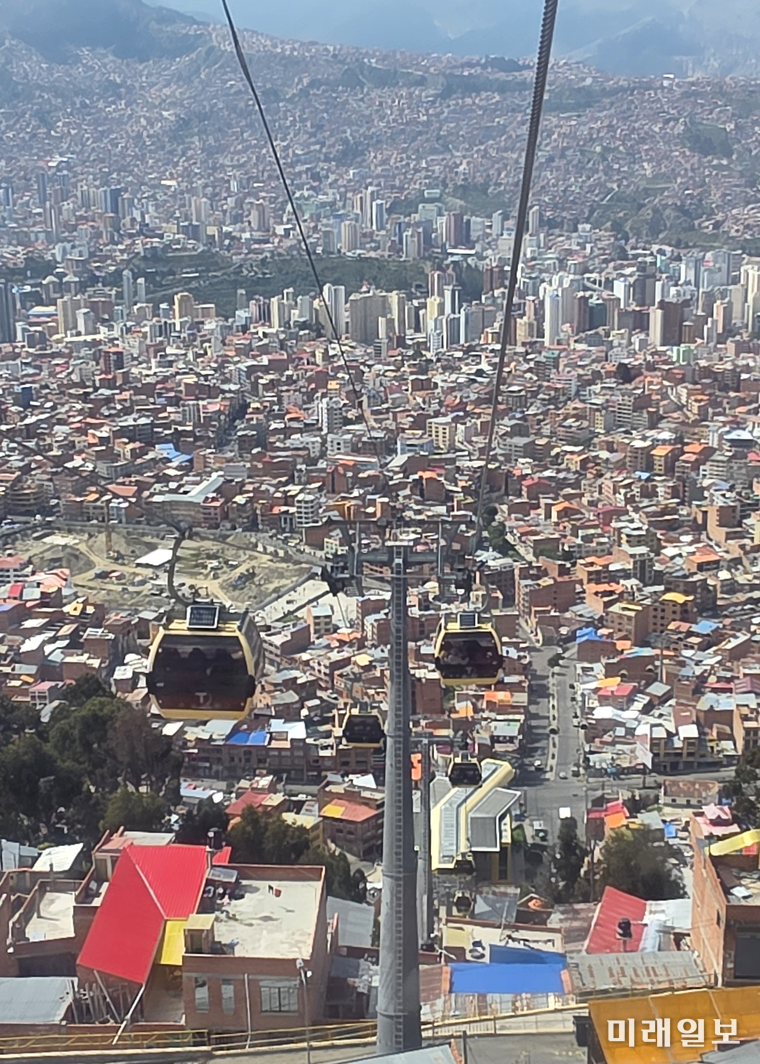 볼리비아의 많은 시민들이 이 케이블카로 출퇴근을 하며 환승역도 여러 곳이라 한다. 케이블카는 색상에 따라 가는 노선이 다르다고 한다. 우리는 처음에는 노란색을 탔고 네 정류장 후 환승역에서 녹색으로 갈아탔다. 몇 정류장 후에 내려 우리는 한식 음식점으로 식사를 하러 갔다.
